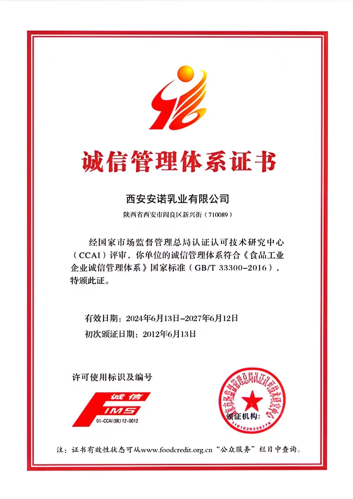 西安安諾乳業(yè)有限公司始建于1973年,迄今已有五十多年的發(fā)展歷史,安諾對于產(chǎn)品質(zhì)量有嚴控體系網(wǎng),確保每一批鮮奶、每一批原輔料、每一個過程、每一款產(chǎn)品,均按標準規(guī)范持之以恒,確保過程嚴謹有序,保證產(chǎn)品質(zhì)量。